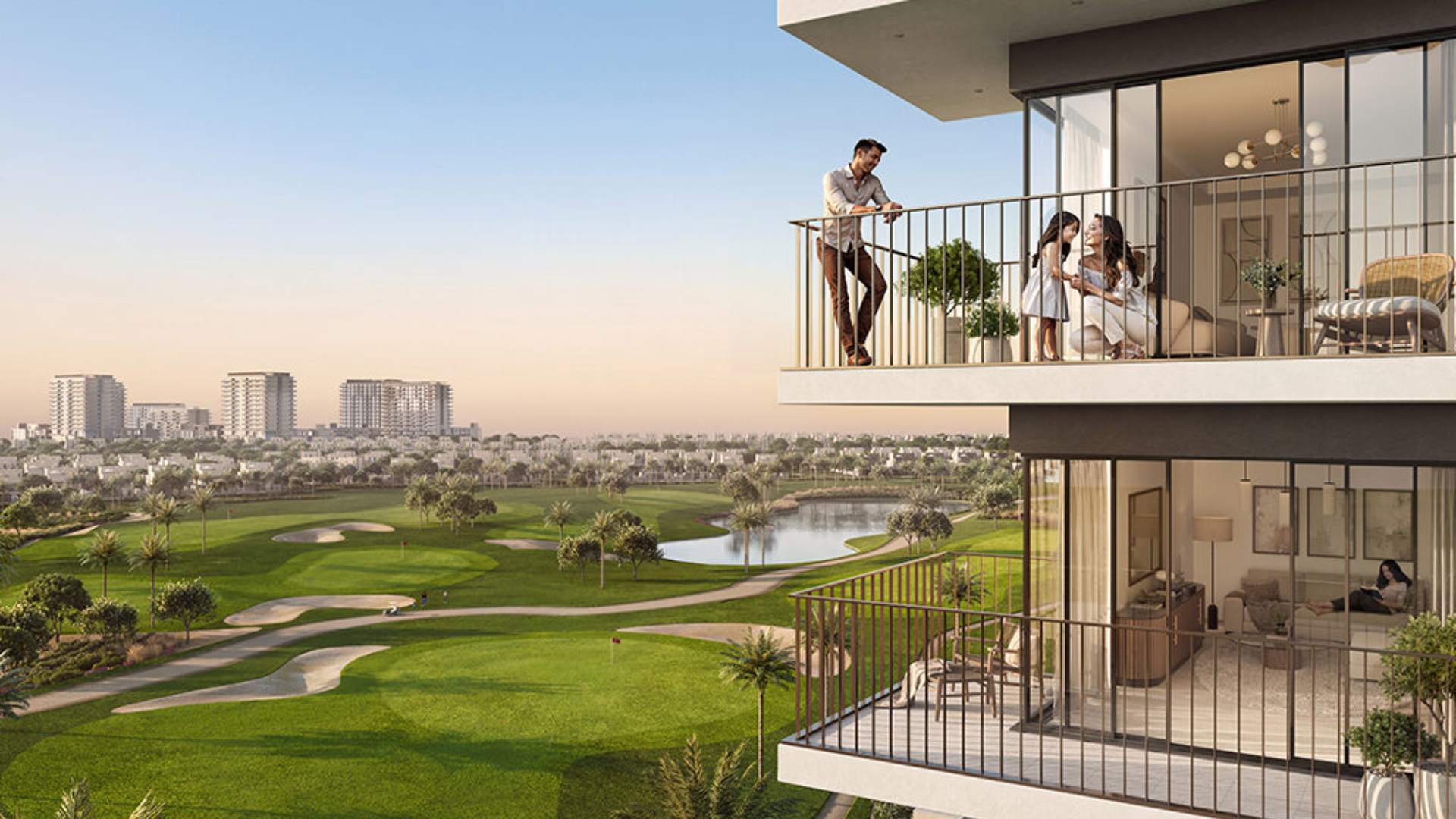 Golf Vale at Dubai South is a modern residential development located within the green surroundings of the Emaar South community. The project features contemporary architecture and offers beautiful views of landscaped parks and the championship golf course, creating a peaceful environment that blends nature with modern living.