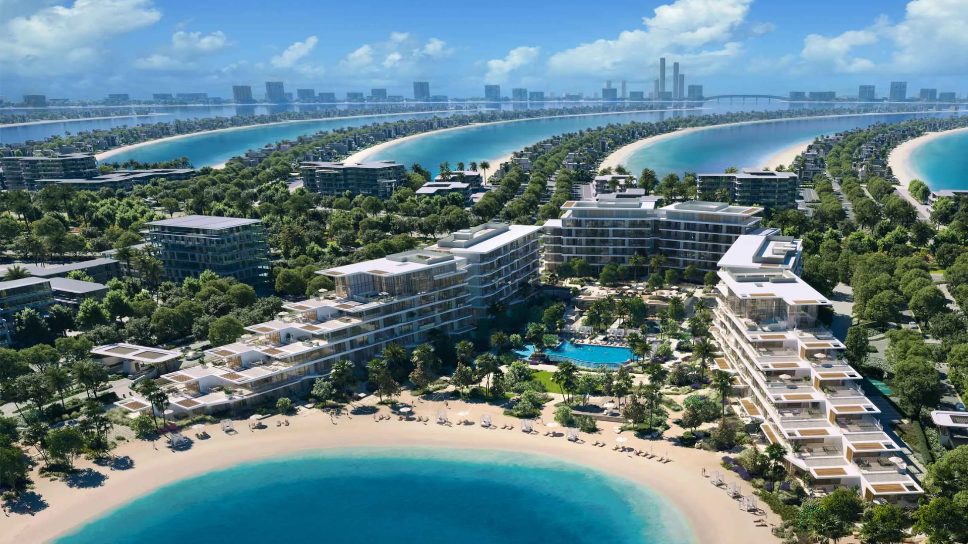 Palm Central Private Residences by Nakheel is the first apartment community on the iconic Palm Jebel Ali — a new chapter in Dubai’s coastal luxury living. Comprising three mid-rise buildings located along the island’s central spine between Fronds M and N, the project redefines modern beachfront living with contemporary architecture and seamless sea views.