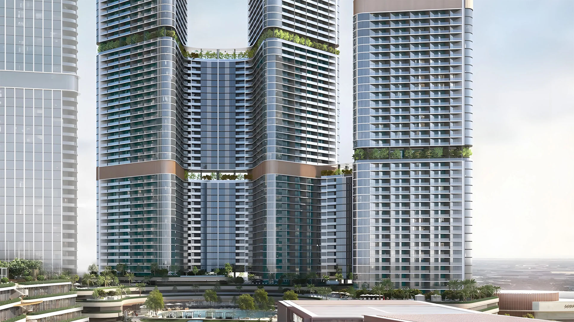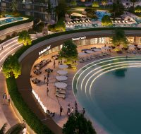 The development is designed around a stunning amphitheater and provides residents with access to dining establishments, tranquil gardens, a clubhouse, a party terrace, and an open-air theatre.